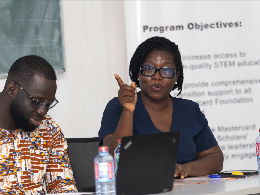 The engagement opened with an exciting Spoken Word performance by two Scholars, on what it means to be supported by the Mastercard Foundation Scholars Program. This was followed by welcoming remarks by Mrs. Beauty Beatrice Kwawu, Program Manager at the Centre, who emphasized the value of continuous dialogue between partners and students in strengthening the Scholars Program. She noted that such interactions offer Scholars a deeper understanding of the program’s vision and encourage them to take ownership of their learning and leadership journey.
